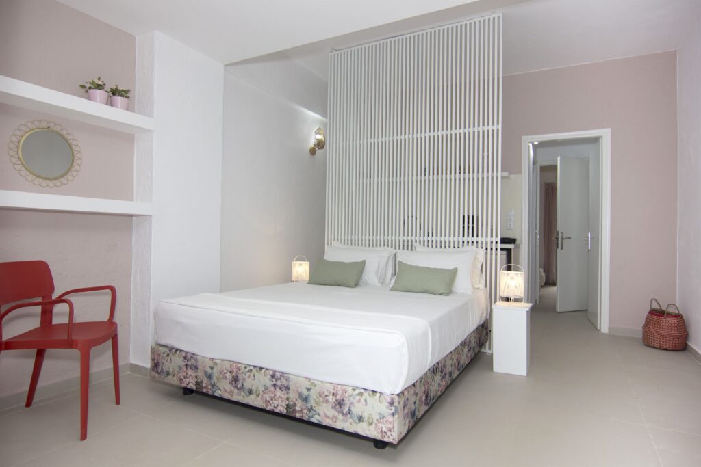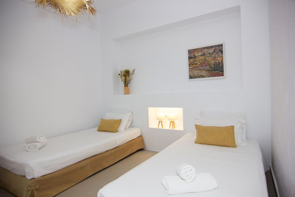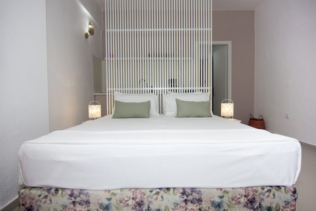 Κάθε διαμέρισμα ενός υπνοδωματίου διαθέτει ένα διπλό κρεβάτι στο υπνοδωμάτιο και από ένα μονό κρεβάτι στην κουζίνα και το καθιστικό.